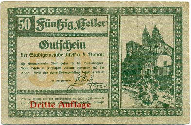 50 геллеров 1920 года Австрия — Мельк (Нотгельд)