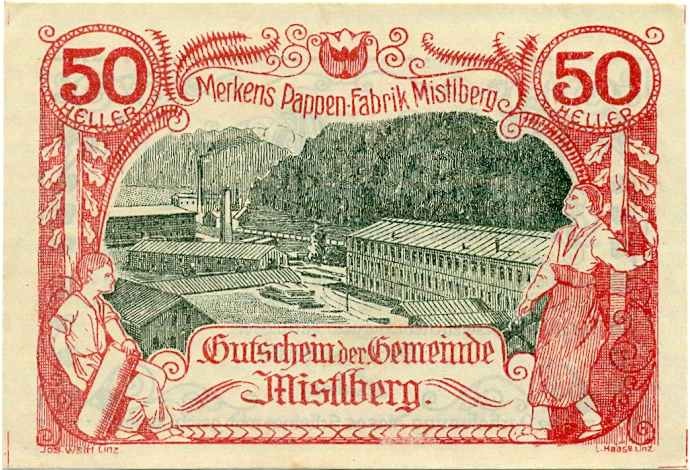 50 геллеров 1920 года Австрия — Мистльберг (Нотгельд)
