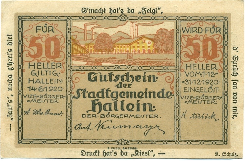 50 геллеров 1920 года Австрия — Халлайн (Нотгельд)