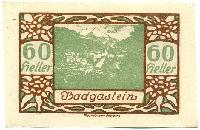 60 геллеров 1920 года Австрия — Бад-Гаштайн (Нотгельд)