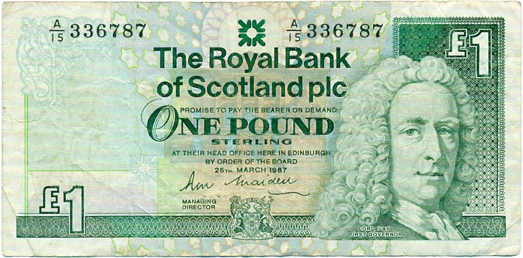 1 фунт стерлингов 1987 года Великобритания (Банк Шотландии)