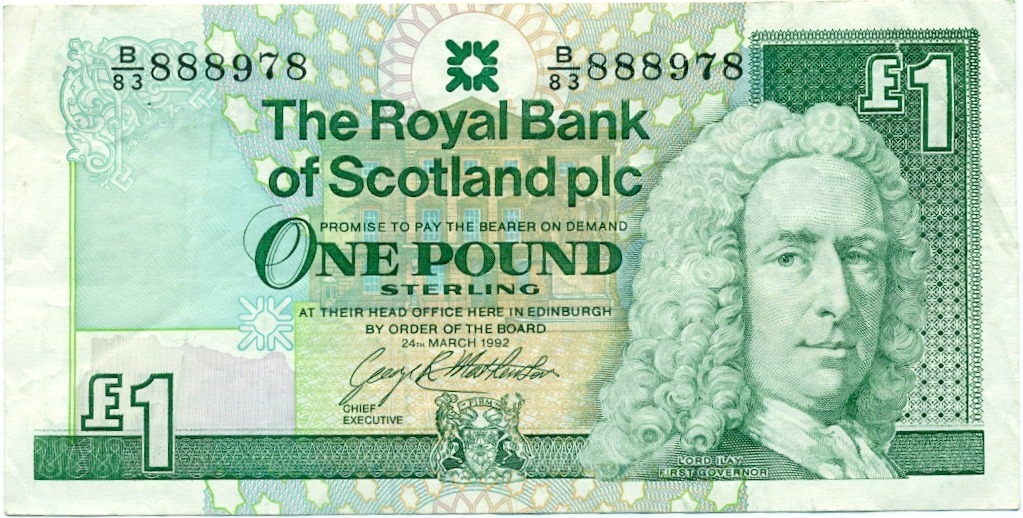 1 фунт стерлингов 1992 года Великобритания (Банк Шотландии)