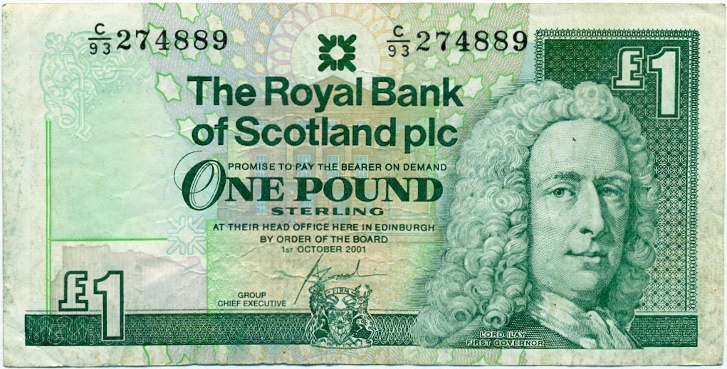 1 фунт стерлингов 2001 года Великобритания (Банк Шотландии)
