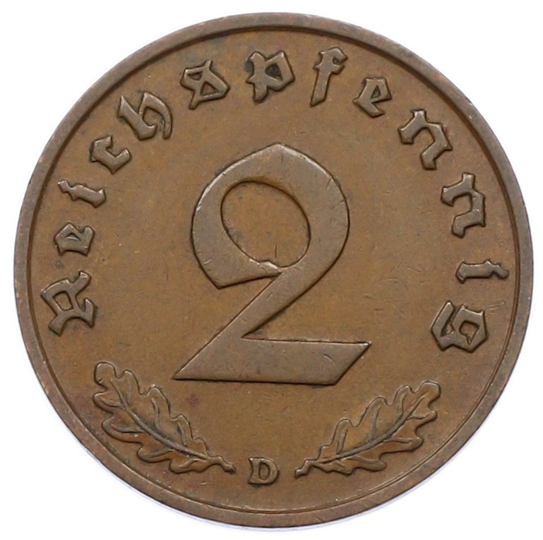 2 рейхспфеннига 1938 года D Германия