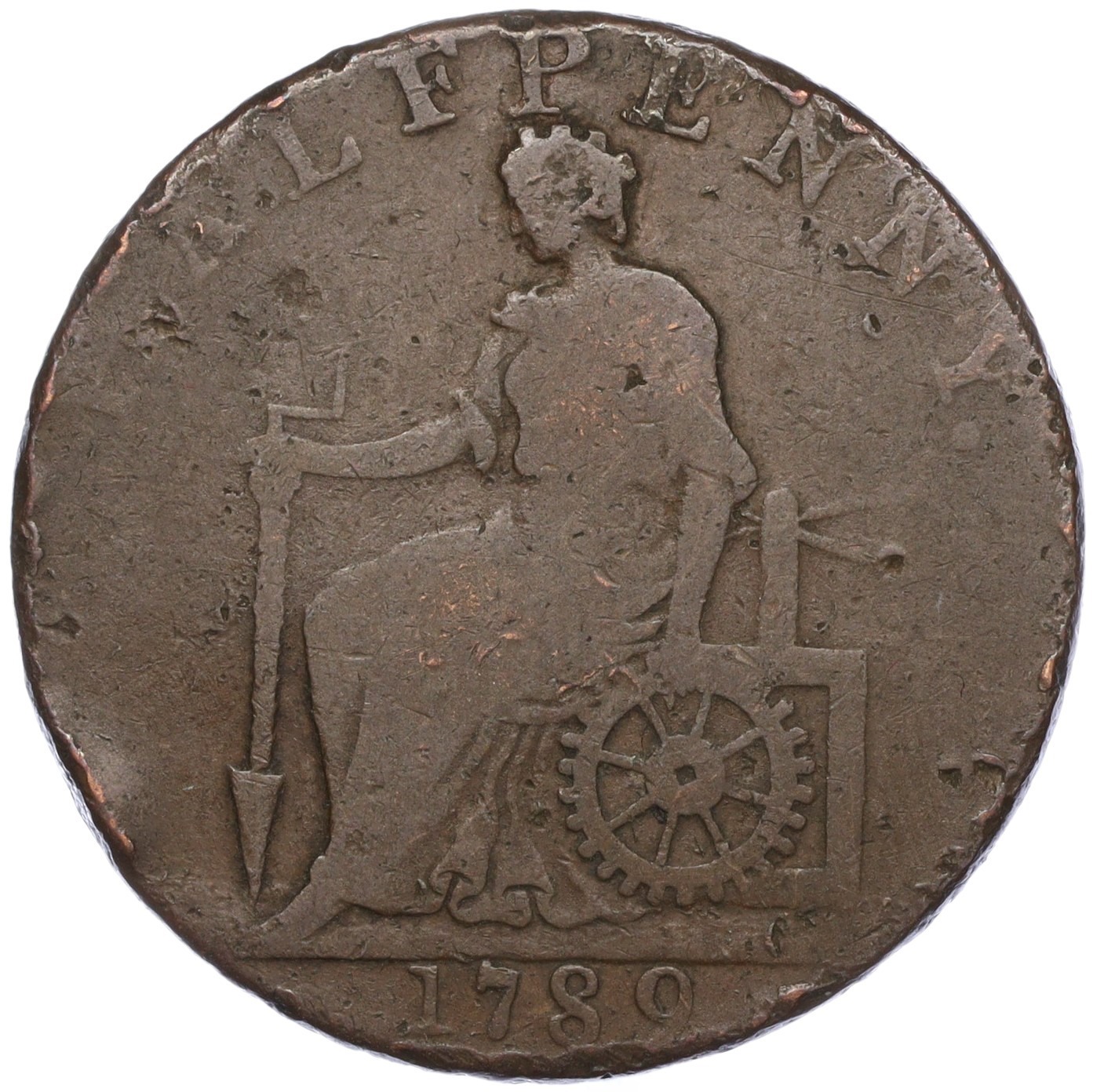 Токен 1/2 пенни 1789 года Великобритания (Чешир-Макклсфилд)
