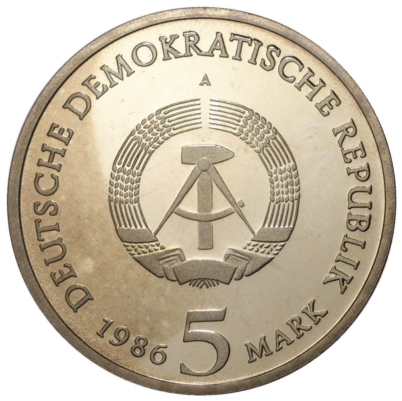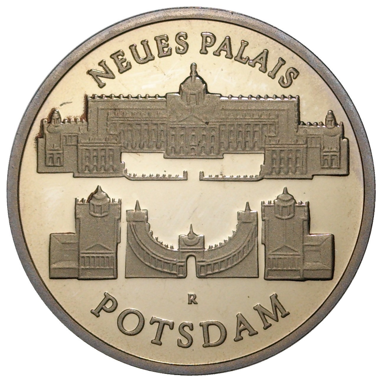 5 марок 1986 года Восточная Германия (ГДР) «Новый дворец в парке Сан-Суси в Потсдаме»