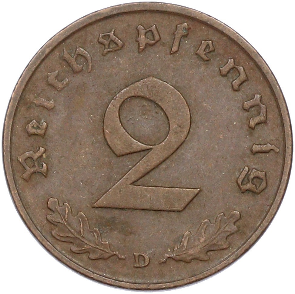 2 рейхспфеннига 1938 года D Германия