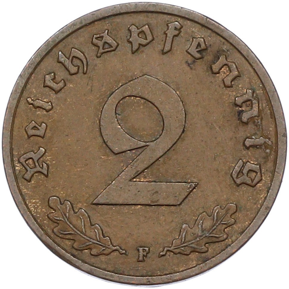 2 рейхспфеннига 1939 года F Германия