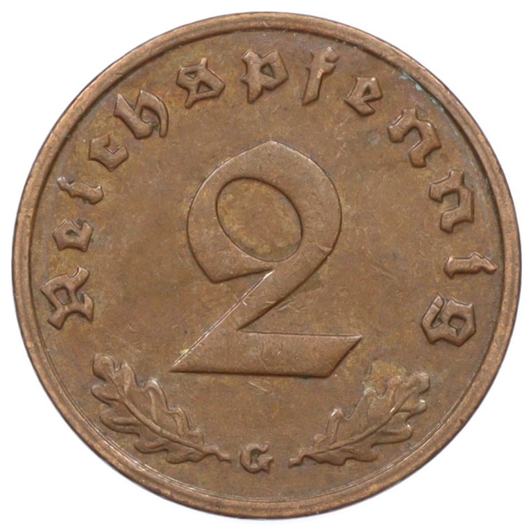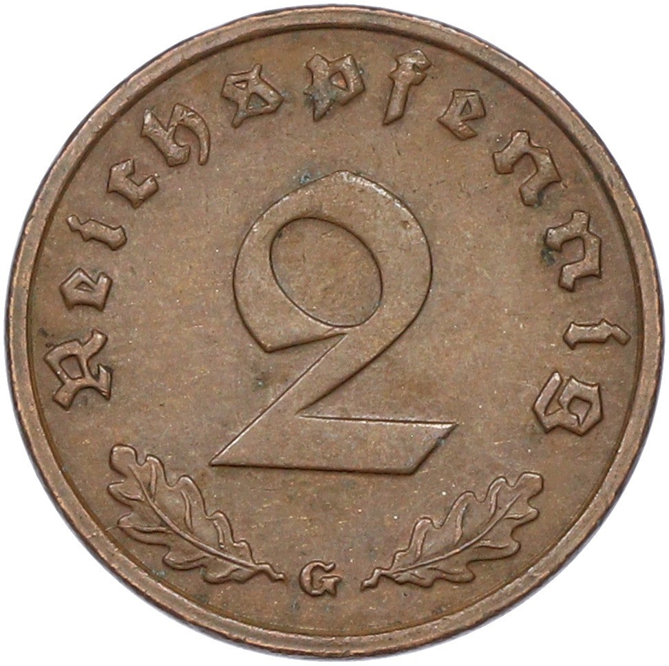 2 рейхспфеннига 1939 года G Германия