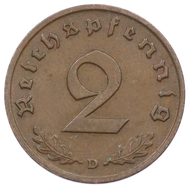 2 рейхспфеннига 1939 года D Германия