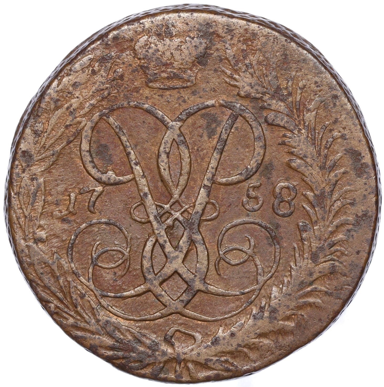 2 копейки 1757 года (Номинал сверху)