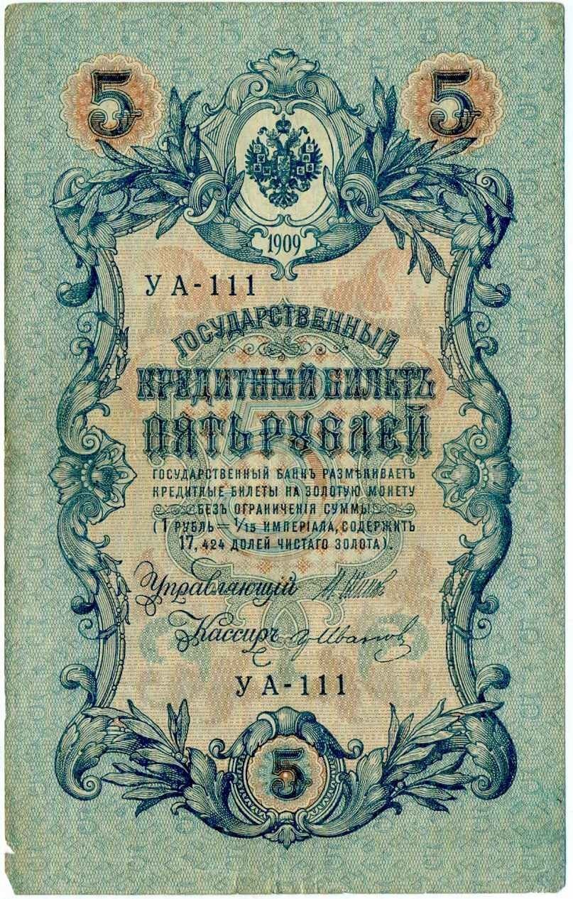 5 рублей 1909 года Шипов / Иванов