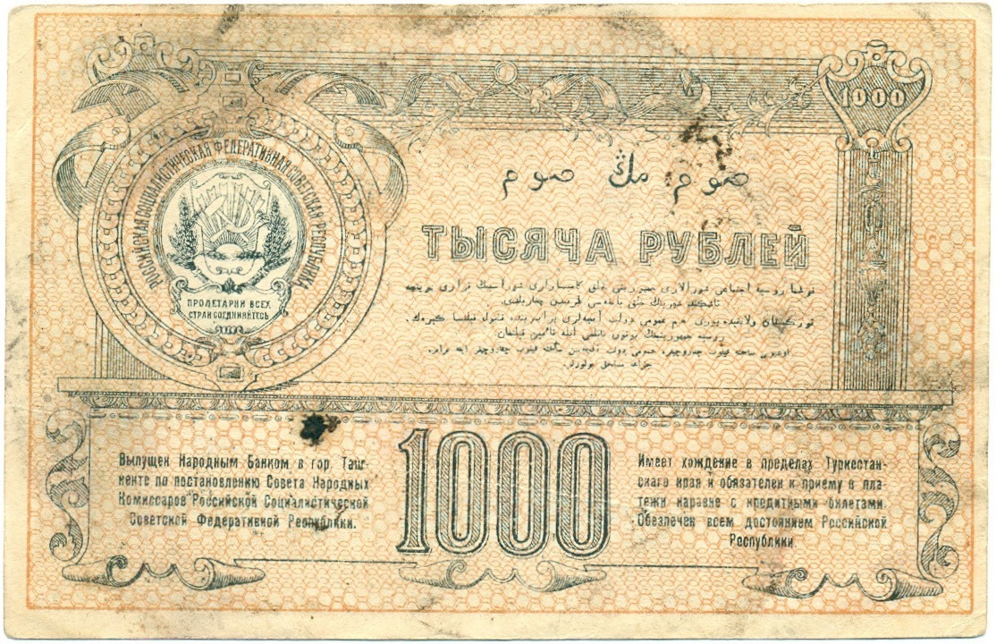 1000 рублей 1920 года Туркестанский край