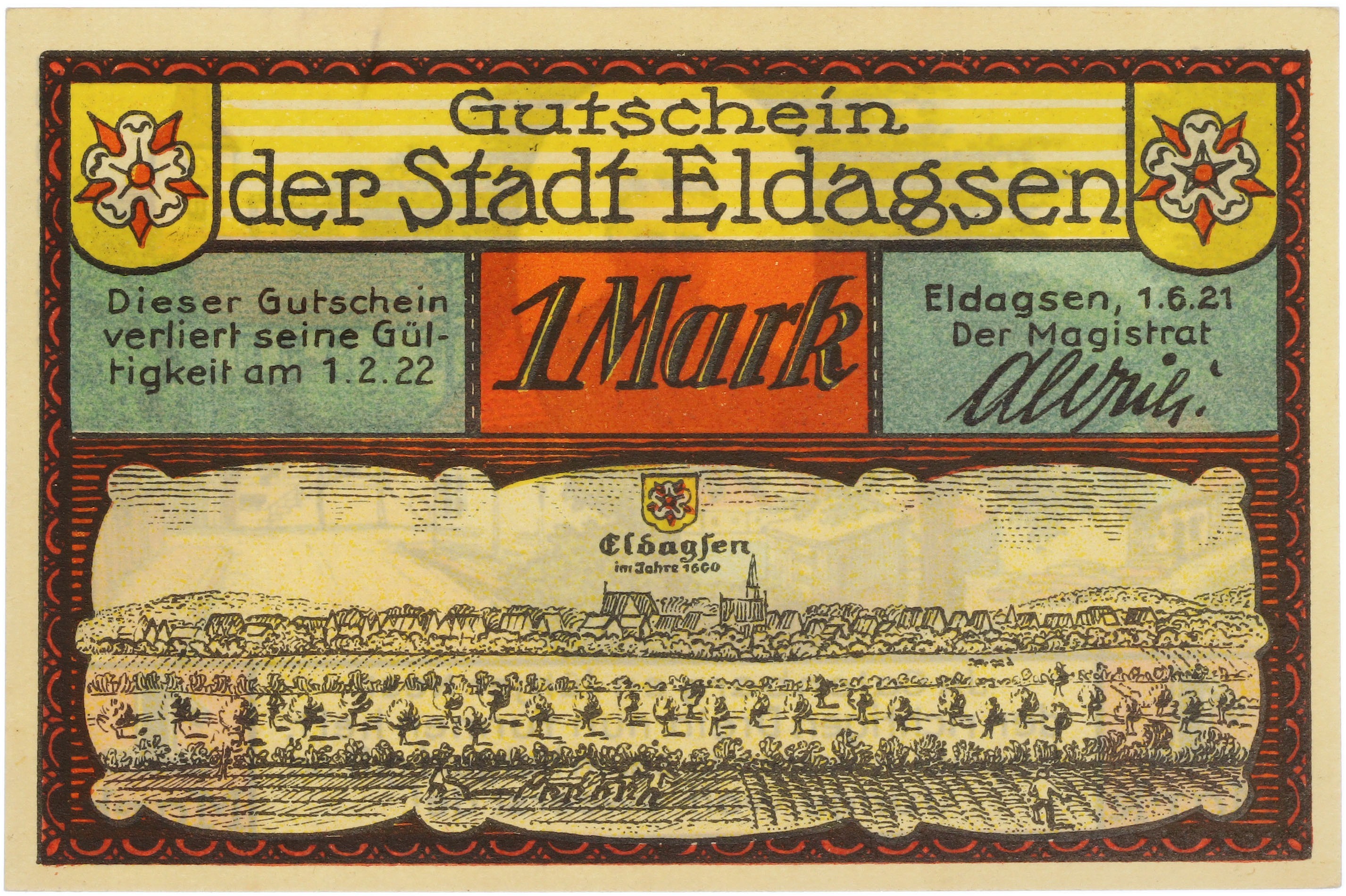 1 марка 1921 года Германия — город Эльдагсен (Нотгельд)
