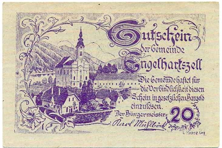 20 геллеров 1920 года Австрия — Коммуна Энгельхартсцелль (Нотгельд)