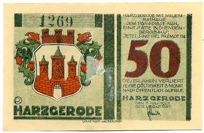 50 пфеннигов 1921 года Германия — Гарцгероде (Нотгельд)