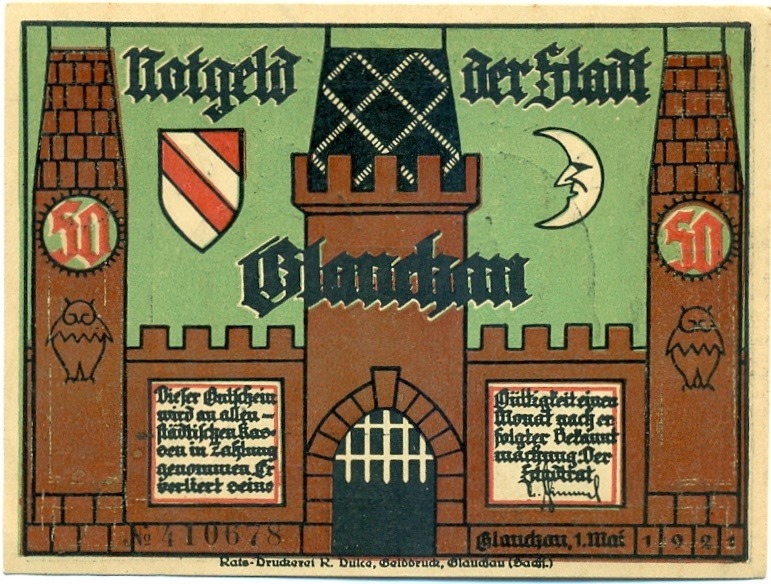 50 пфеннигов 1921 года Германия — Глаухау (Нотгельд)