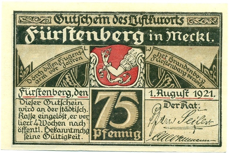 75 пфеннигов 1921 года Германия — Фюрстенберг (Нотгельд)