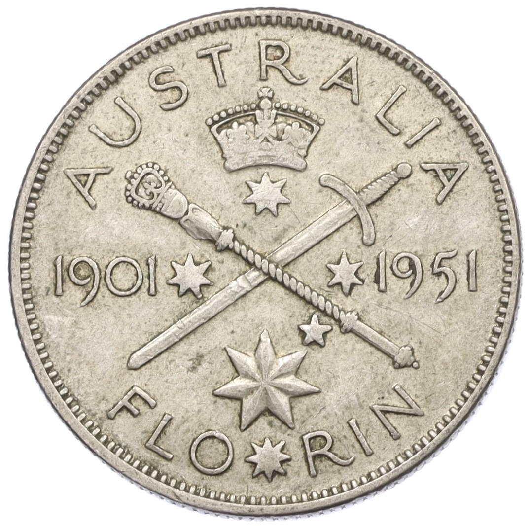 1 флорин 1951 года Австралия «50 лет Федерации»