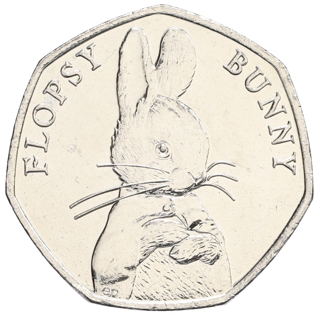 50 пенсов 2018 года Великобритания «150 лет со дня рождения Беатрис Поттер — Флопси Банни»