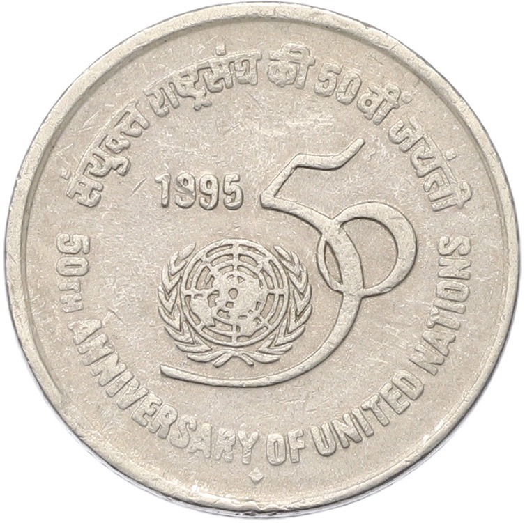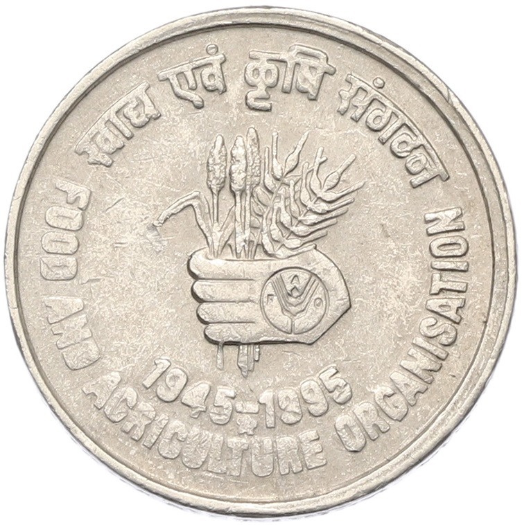 5 рупий 1995 года Индия «50 лет продовольственной программе — ФАО»