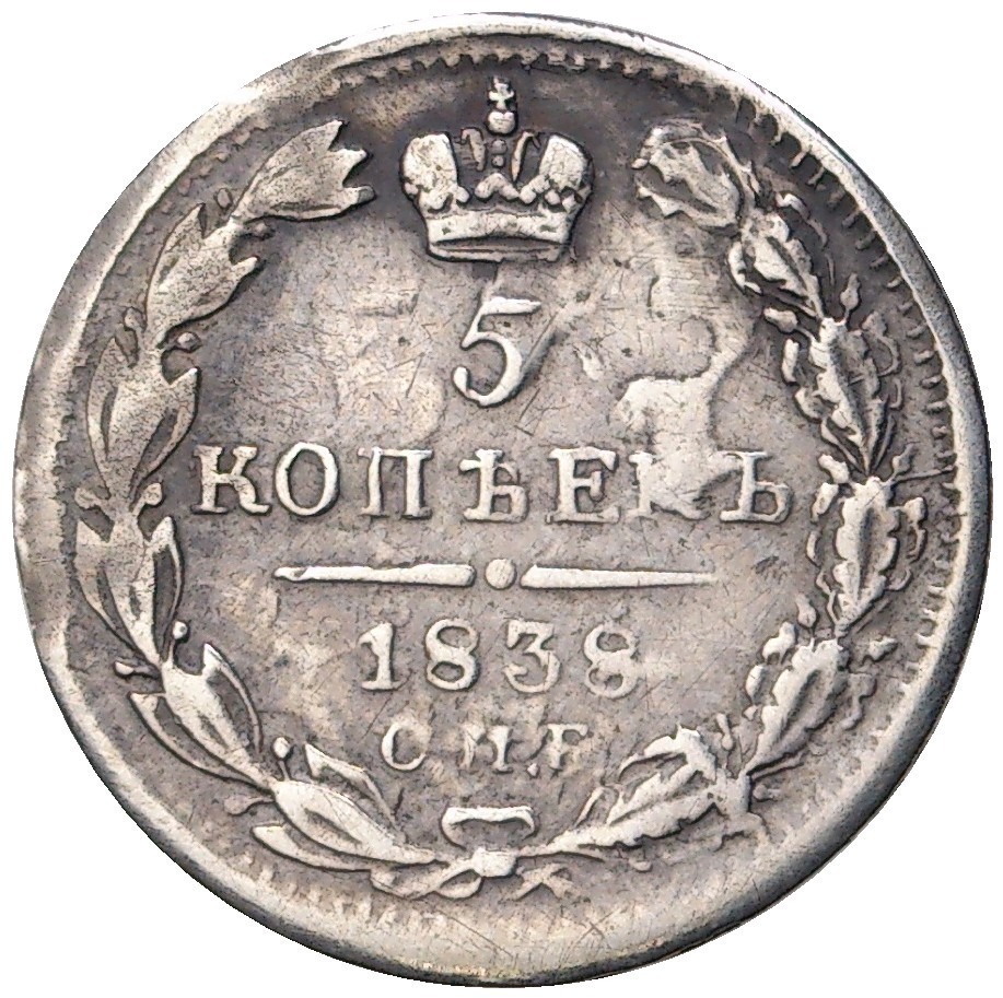 5 копеек 1838 года СПБ НГ