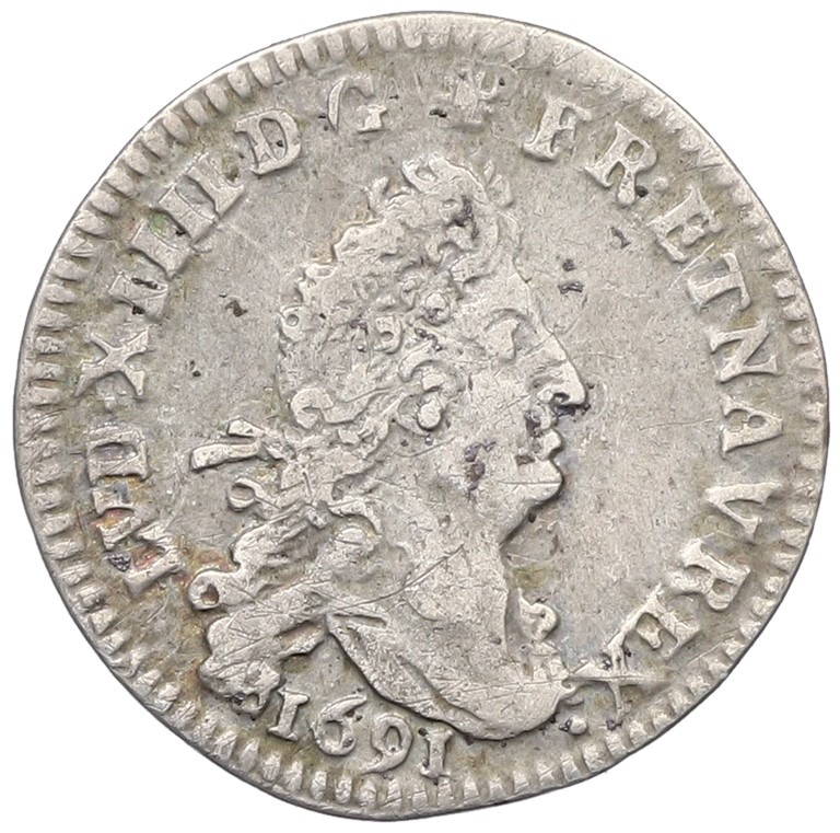 4 денье 2 соля 1691 года D Франция