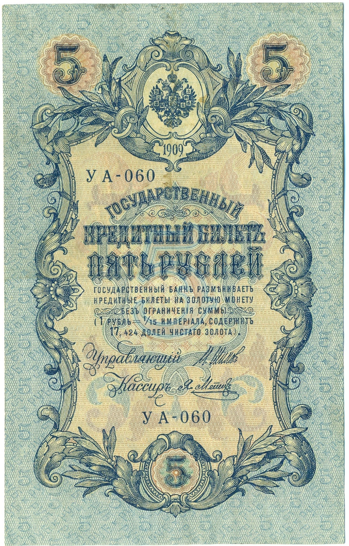 5 рублей 1909 года Шипов / Метц