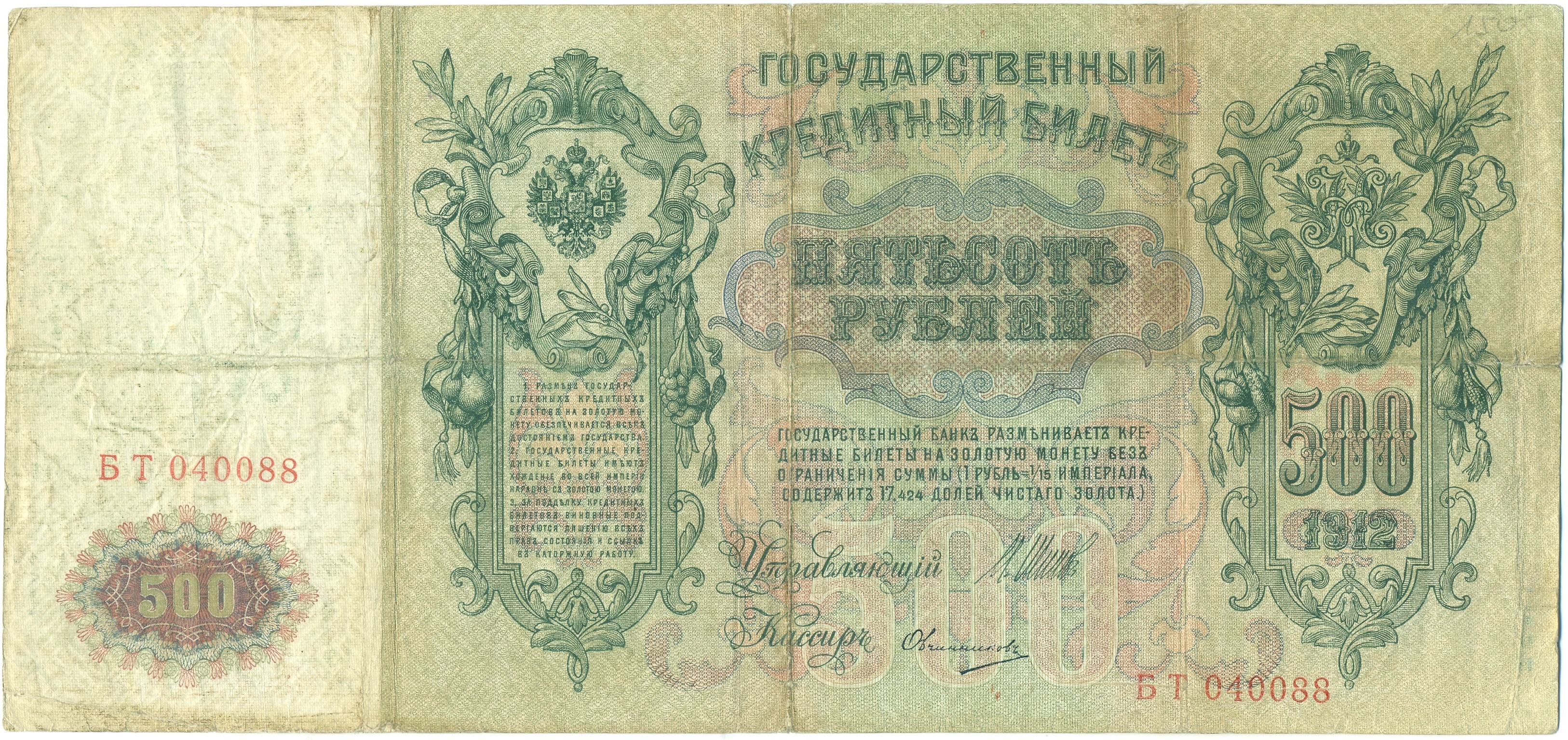 500 рублей 1912 года Шипов / Овчинников
