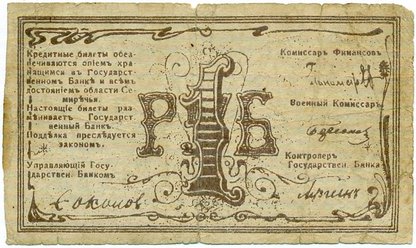 1 рубль 1918 года Семиречье (Семиреченский областной совет)