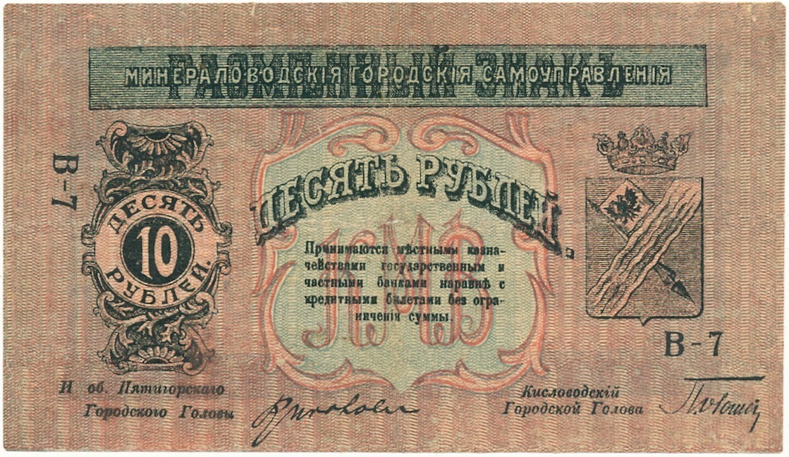 10 рублей 1918 года Минераловодская Городская Управа