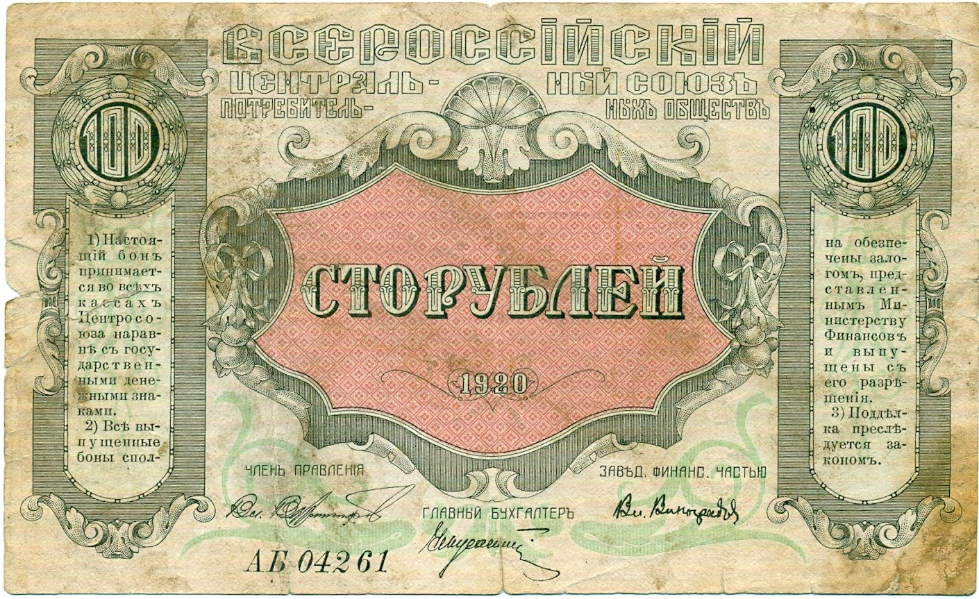 100 рублей 1920 года Центросоюз Владивосток
