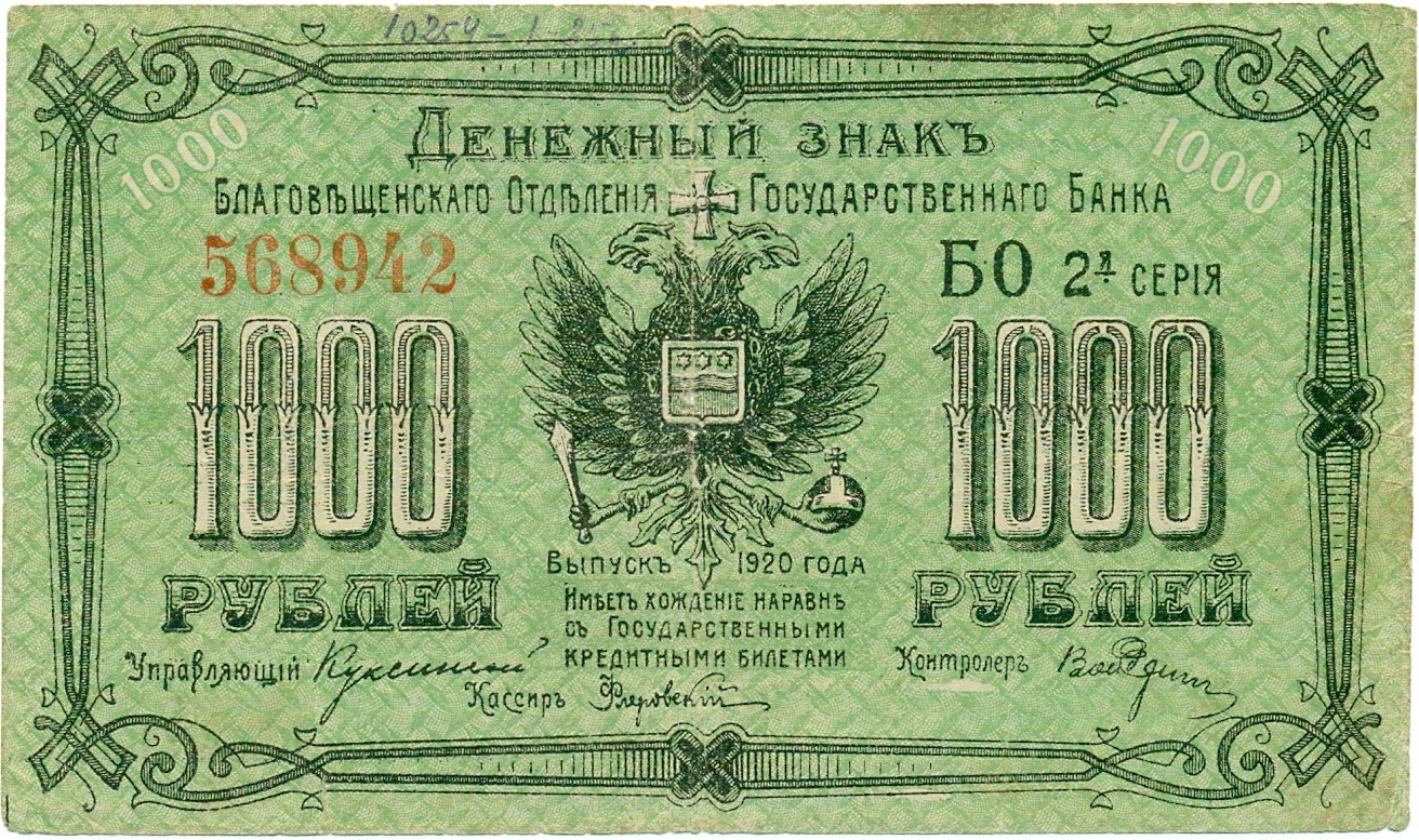 1000 рублей 1920 года Благовещенск