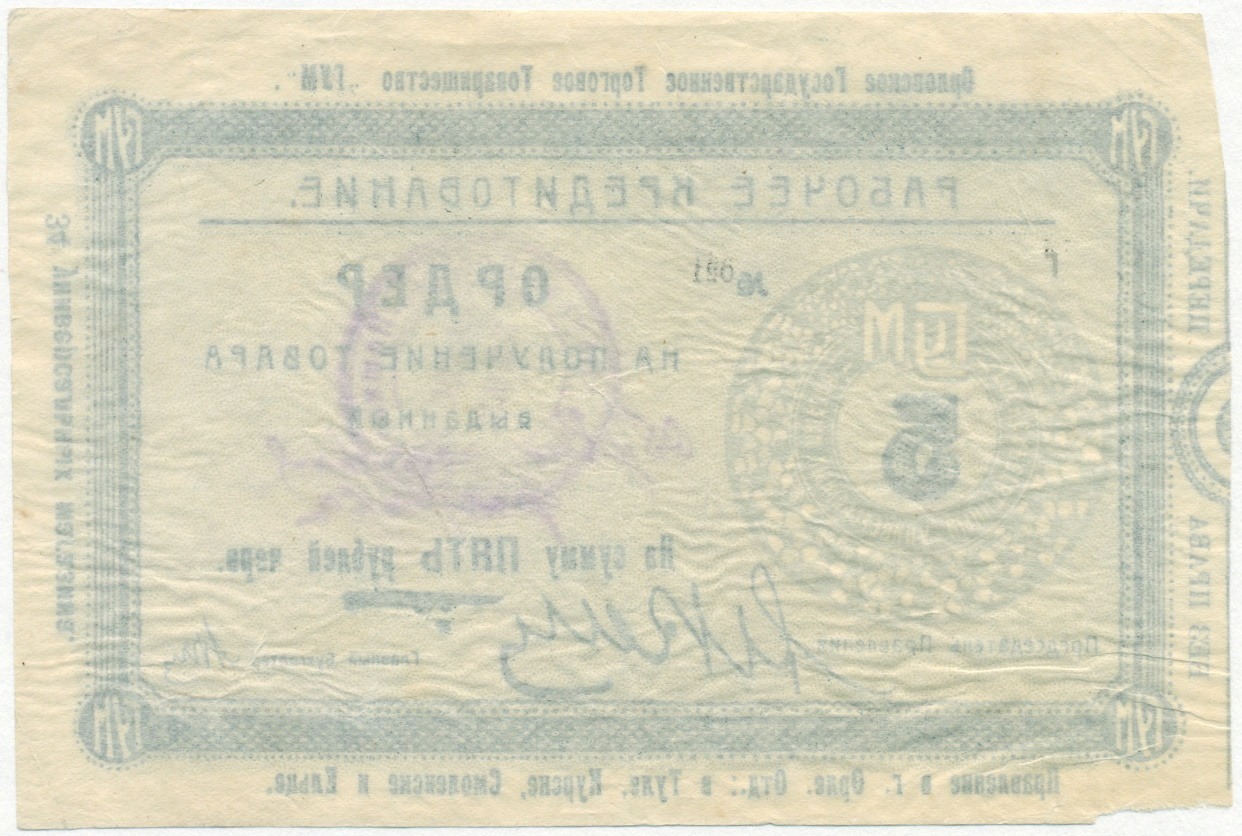 5 рублей 1923-1924 года Орловское государственное торговое товарищество «ГУМ»