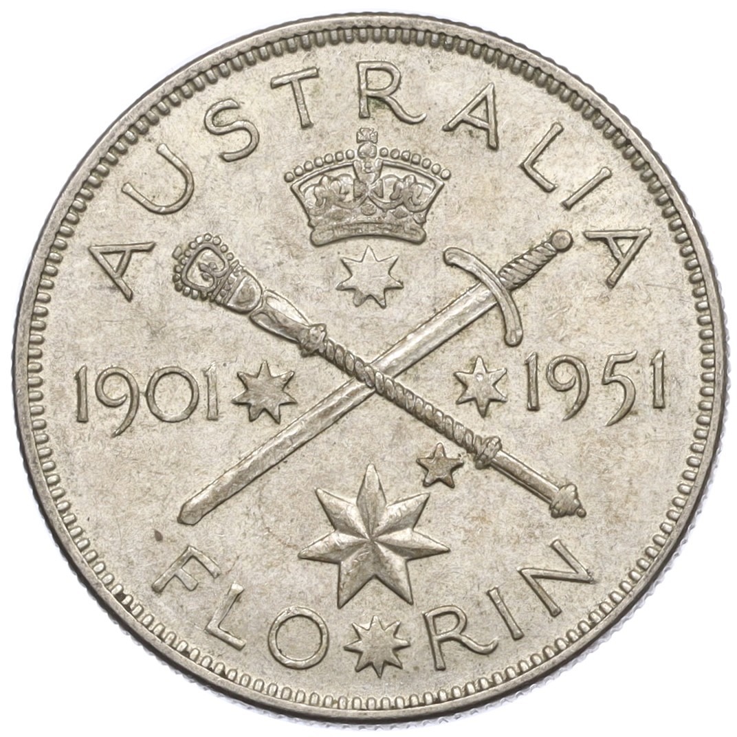 1 флорин 1951 года Австралия «50 лет Федерации»