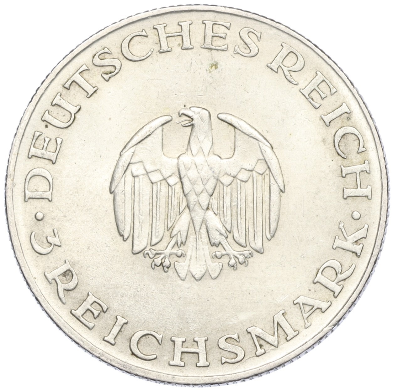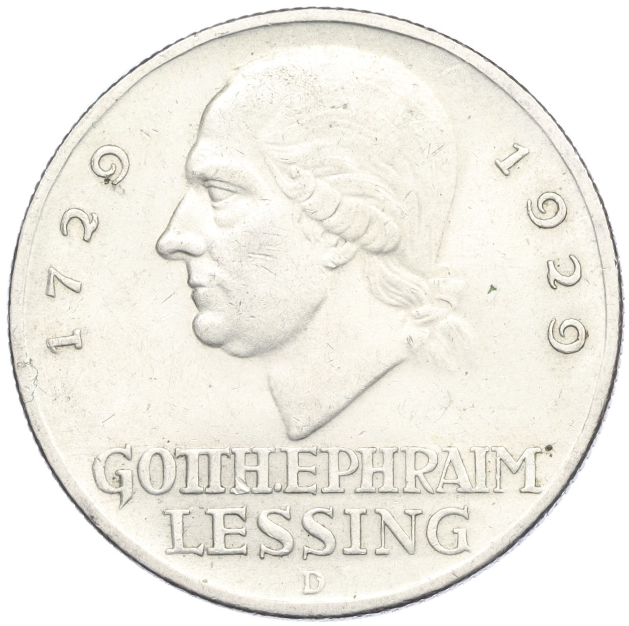 3 рейхсмарки 1929 года D Германия «200 лет со дня рождения Готхольда Лессинга»