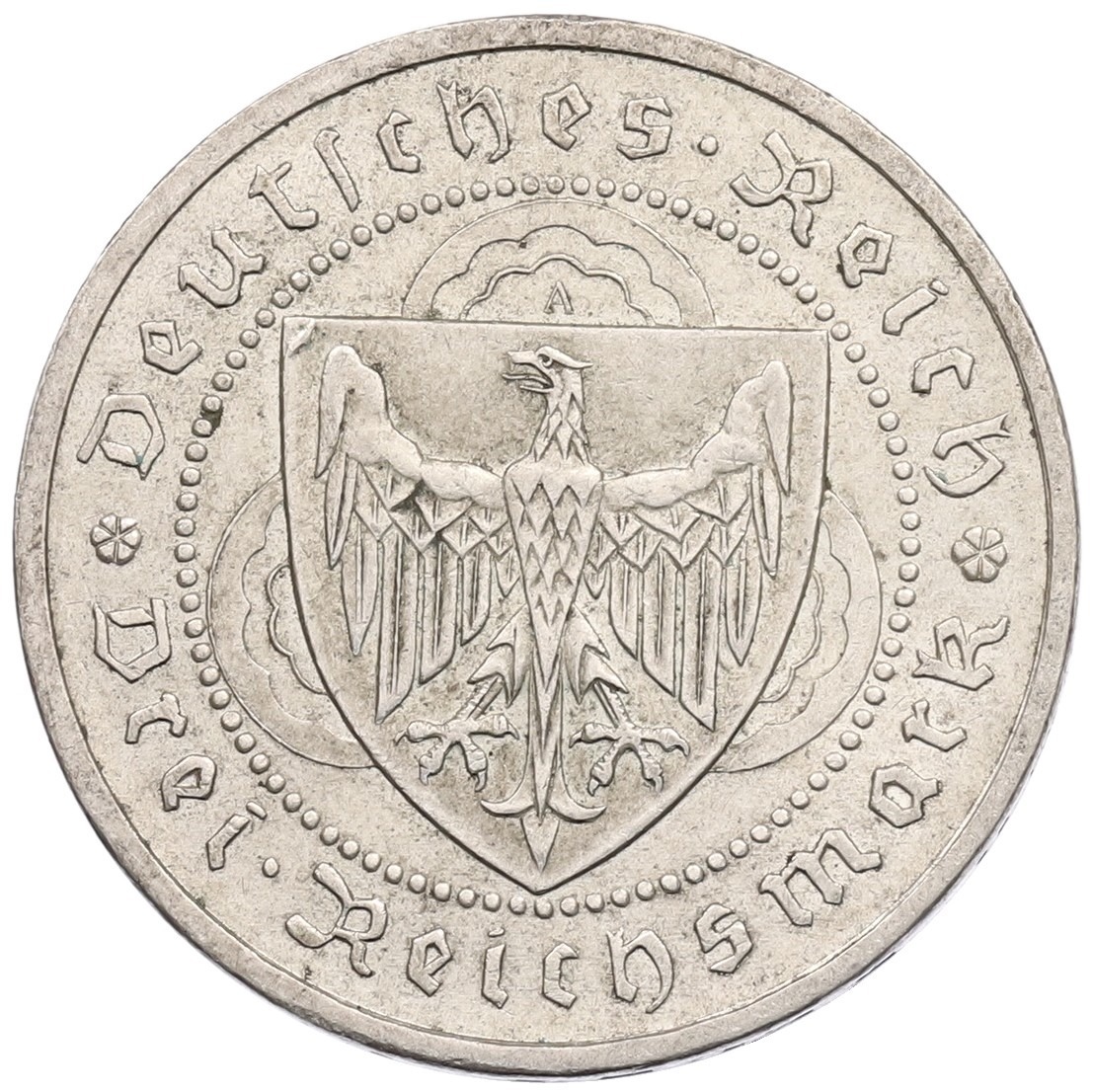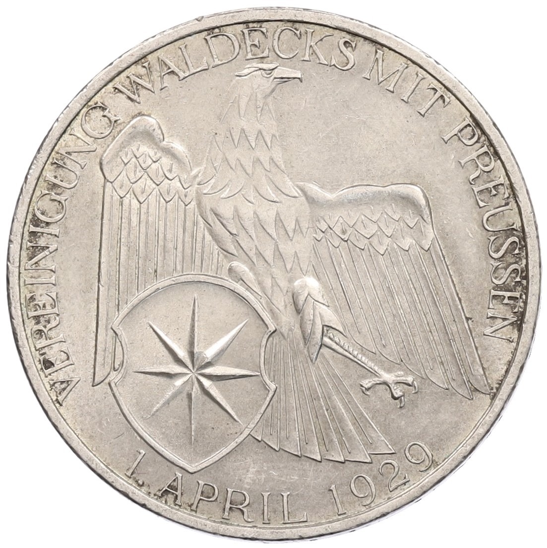 3 рейхсмарки 1929 года А Германия «Объединение Вальдека и Пруссии»