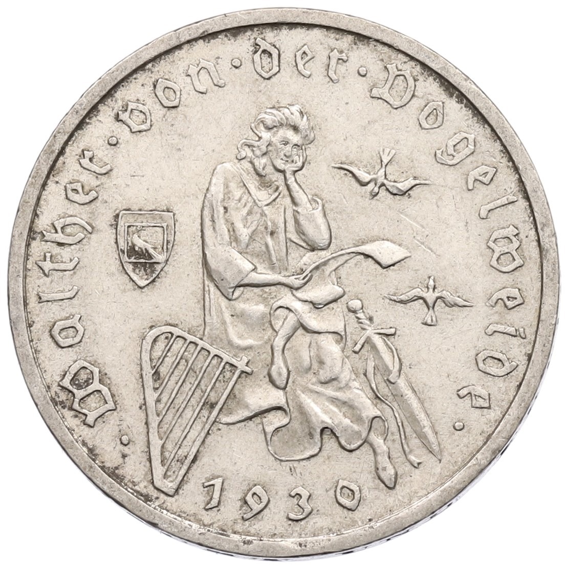 3 рейхсмарки 1930 года А Германия «700 лет со дня смерти Вальтера фон дер Фогельвейде»