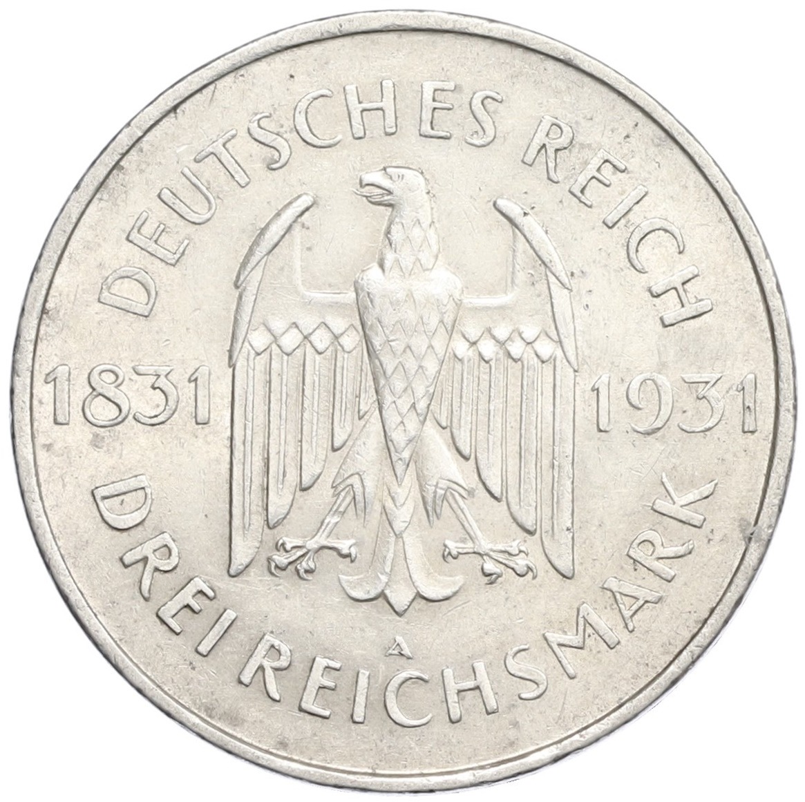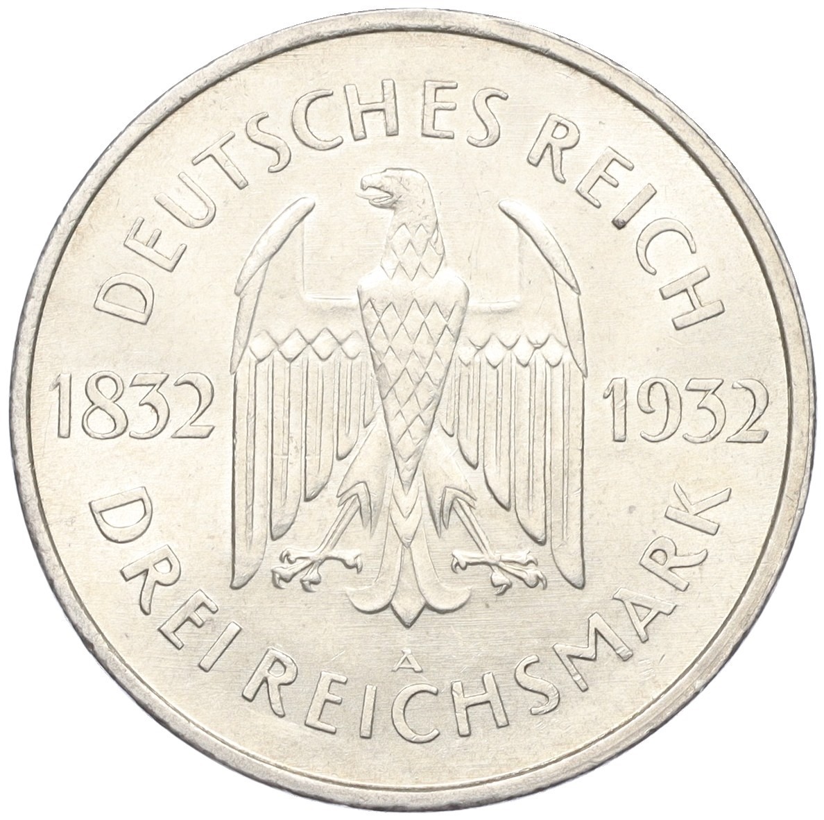 3 рейхсмарки 1932 года A Германия «100 лет со дня смерти Гете»