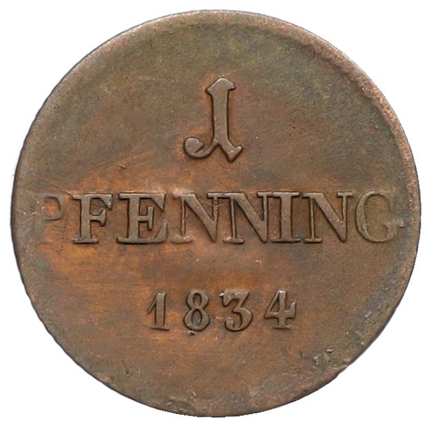 1 пфенниг 1834 года Бавария