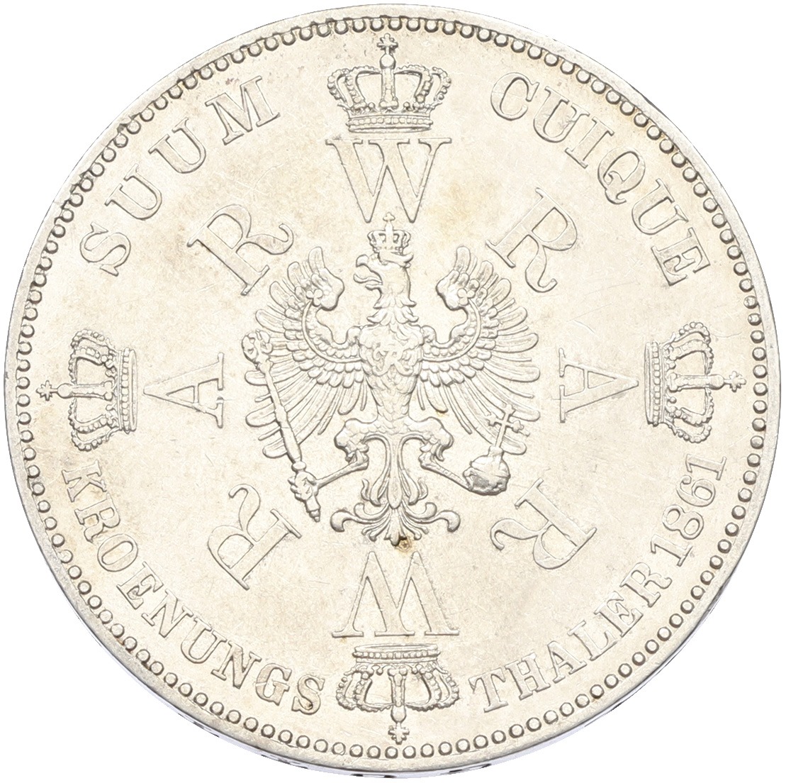 1 талер 1861 года Пруссия «Коронация Вильгельма I и Августы»