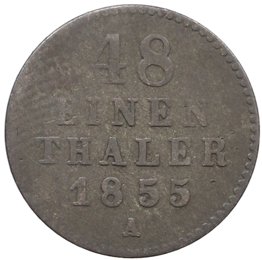 1/6 талера 1854 года Саксония «Смерть Короля Фридриха Августа II»