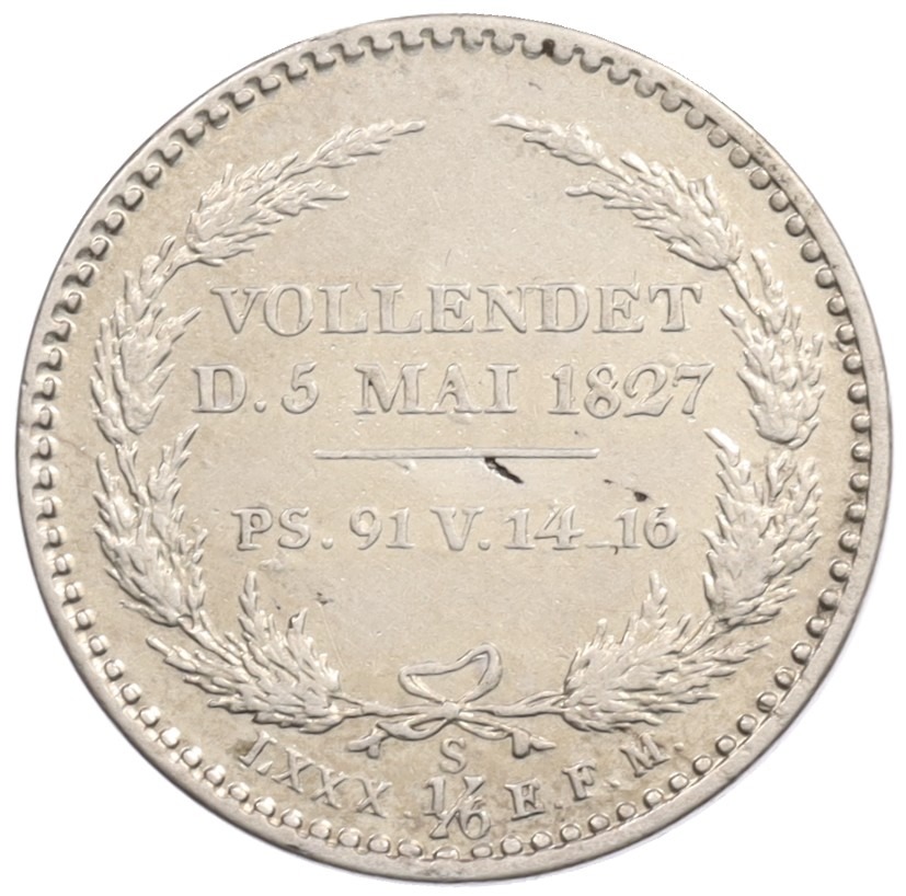 1/6 талера 1827 года Саксония «Смерть Короля Фридриха Августа I»
