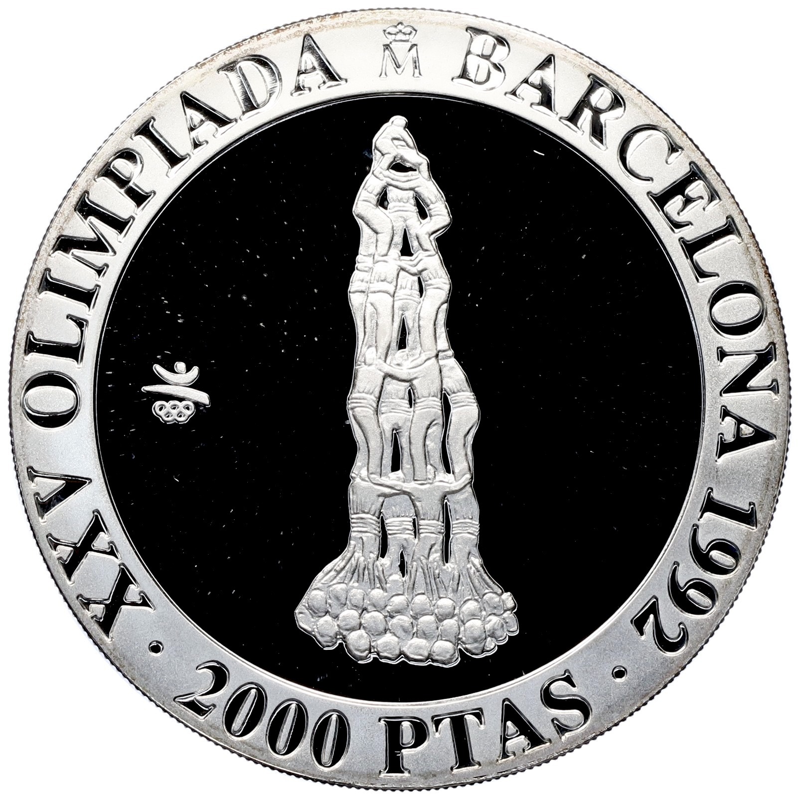 2000 песет 1990 года Испания «XXV Летние Олимпийские игры в Барселоне 1992 — Человеческая пирамида»