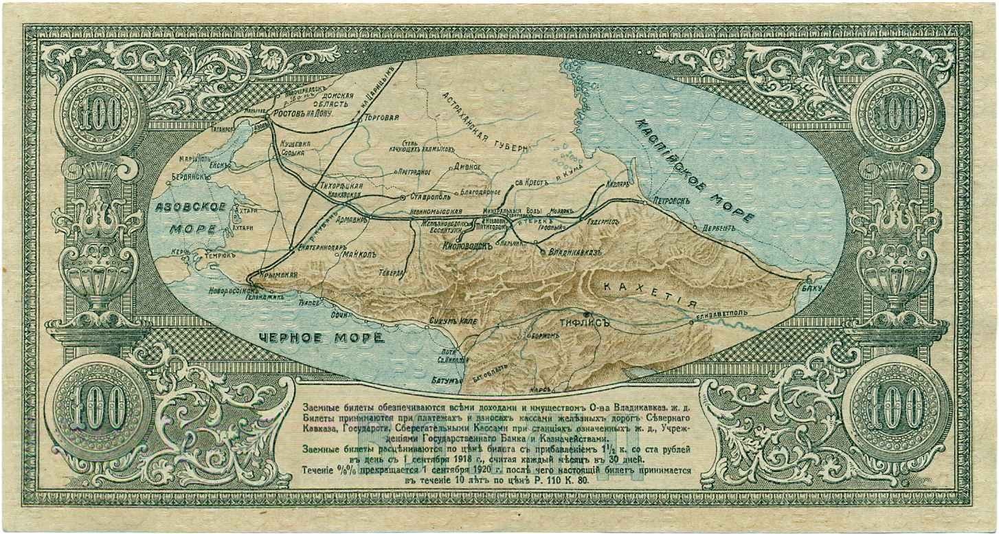 100 рублей 1918 года Общество Владикавказской железной дороги