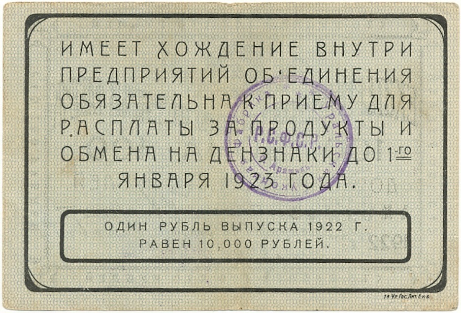 100 рублей 1922 года Екатеринбургское отделение текстильных фабрик