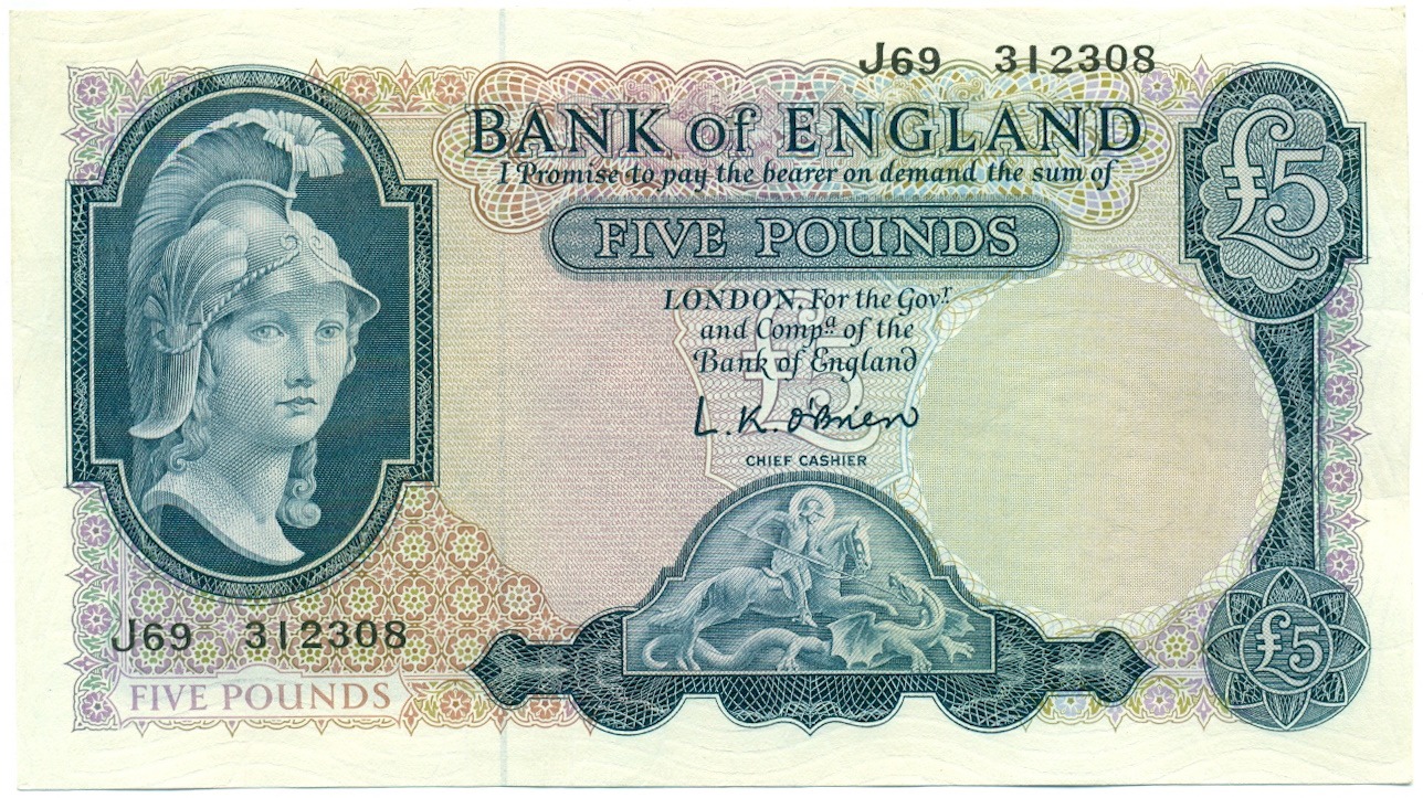 5 фунтов 1961 года Великобритания (Банк Англии)