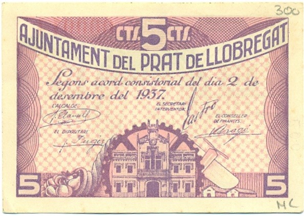 5 сентимо 1937 года Эль-Прат (Гражданская Война в Испании)