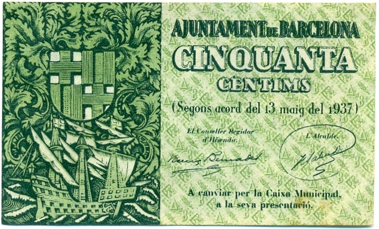 50 сентимо 1937 года Барселона (Гражданская Война в Испании)