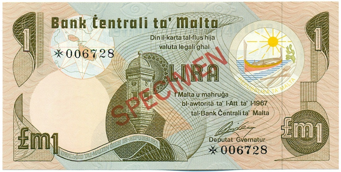 1 фунт (лира) 1967 года Мальта (ОБРАЗЕЦ)